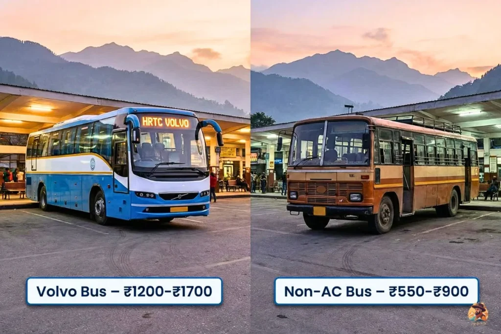 - HRTC Volvo: ₹1200–₹1700, smoother, warm blanket, better sleep